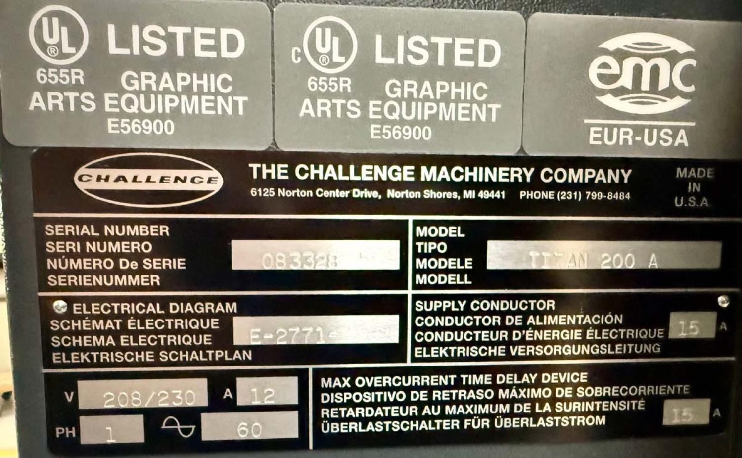 Specification:Specification:S/N - 083328. 220 volt single phase electrics.