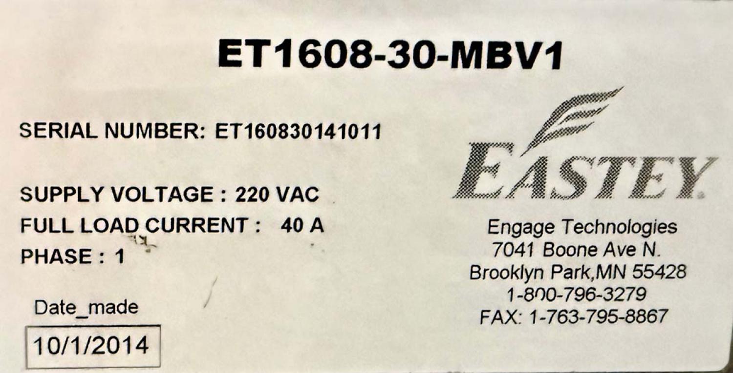 220V, 1Ph, 15A. and 220V, Ph1, 40A. - Including Eastey 1608-30 Shrink Tunnel