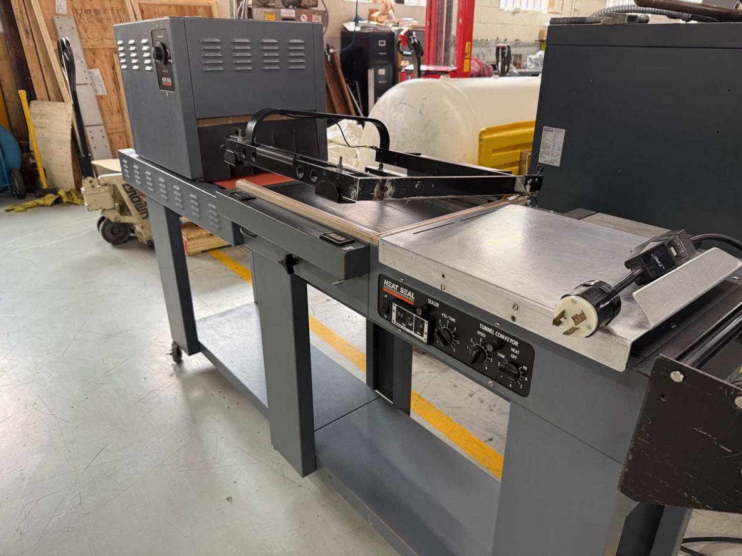 Heat Seal USA Shrink Wrap System model HS115T #IKA11662 with power take away from L bar sealer into tunnel.