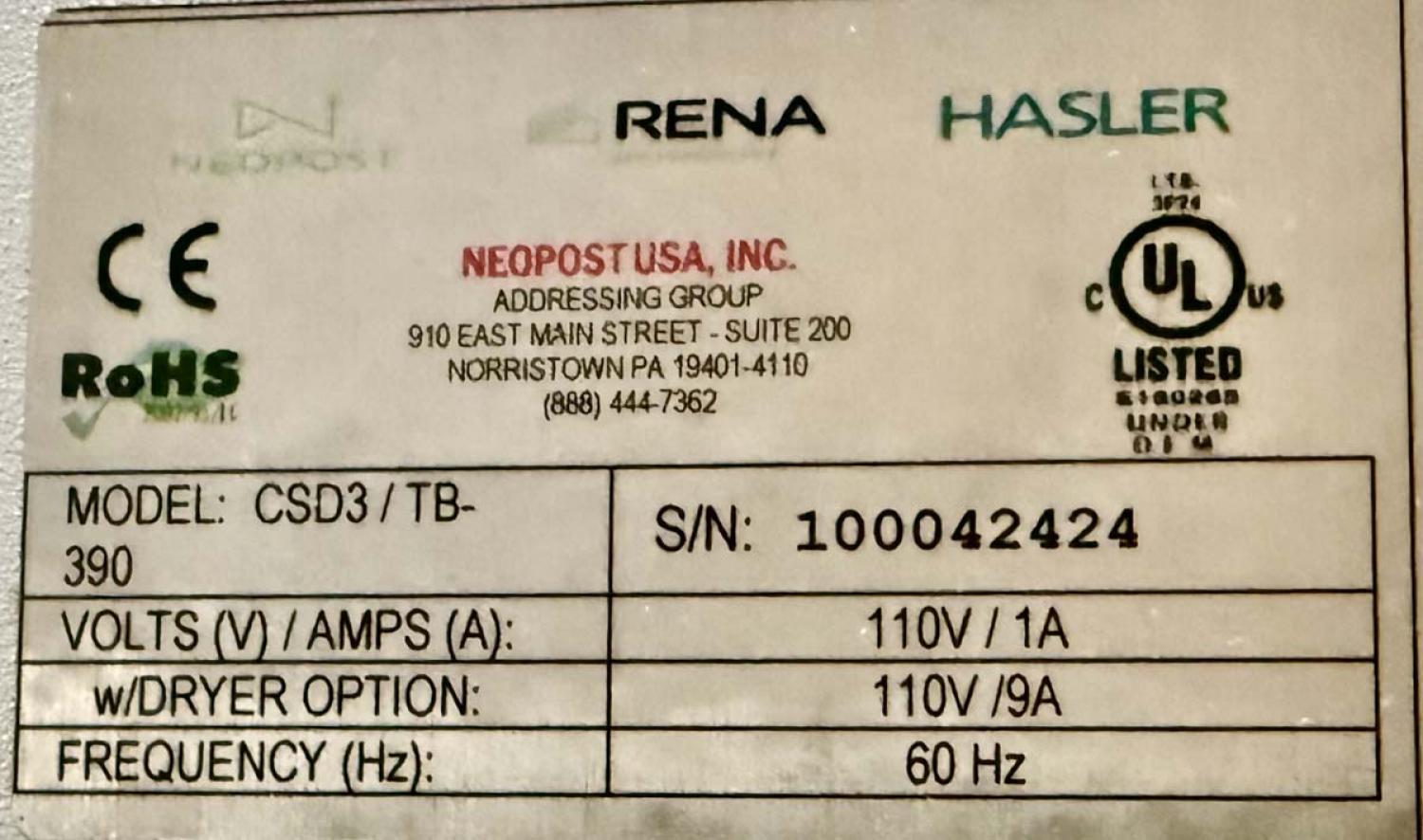 Neopost Quadient Mach 6 Memjet Digital Printing System #100042598 including Product Feeder, Conveyor Delivery and Floor Stand.