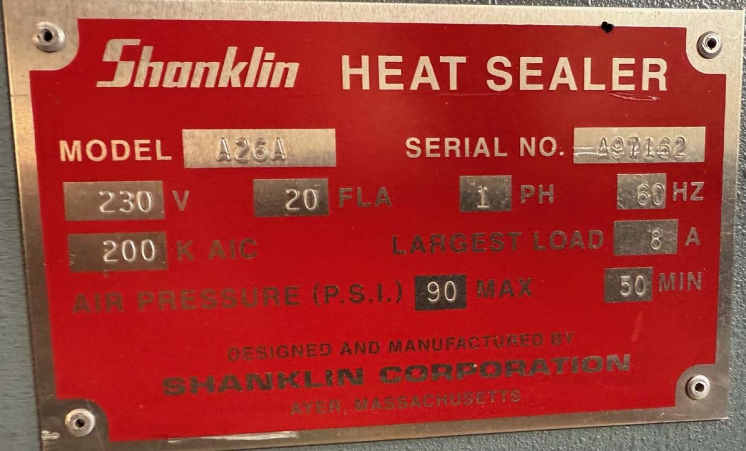 Shanklin A26A Automatic Sealer, Scrap Winder and Eastey 16-08 Tunnel. Seals up to 35 packages per minute.